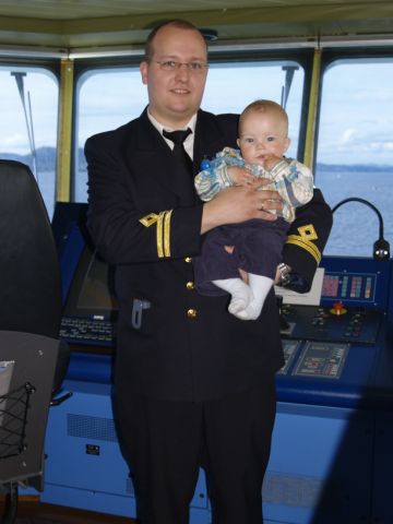 Pappa og Erik ombord på Hurtigruteskipet M/S Kong Harald hvor pappa seilte våren 2007.